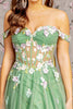 Indulge in the captivating allure of the GLS by Gloria GL3227 dress. This stunning gown exudes elegance and glamour, making it the perfect choice for any formal occasion. The intricately designed glitter jewel bodice shimmers under the lights, while the off-shoulder style and sweetheart neckline create a romantic and alluring silhouette. The lace-up back with central zipper closure ensures a perfect fit, while the ethereal mesh A-line skirt falls gracefully to the floor, creating a captivating silhouette. Available in the enchanting Sage color, this dress effortlessly combines sophistication and glamour, turning heads wherever you go.