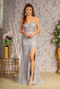 The GLS by Gloria GL3273 dress is a captivating masterpiece that exudes contemporary charm and timeless elegance. Crafted from luxurious mesh fabric, this stunning sleeveless gown features a transparent corset top that radiates with shimmering sequins, glittering gems, and shimmering beads. Thin spaghetti straps provide comfort while leading to a striking open back with a lace-up tie and central zipper closure. The full-length sheath design includes a removable waist drape with a stylish slit, culminating in a graceful train. This gown seamlessly blends contemporary allure with classic sophistication, creating an unforgettable look for any special occasion. Available in Silver.