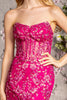 Indulge in the epitome of elegance with the GLS by Gloria GL3216 dress. This captivating gown features a stunning sequin sheer bodice adorned with an intricate design. The strapless corset bodice cinches your waist, while the scoop neckline adds a touch of allure. Secured with a lace-up tie and central zipper closure, this dress ensures a perfect fit.