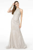 Ladivine Off Shoulder Fringe Prom Dress Beaded Slit Evening Gown CC324 Black/Nude