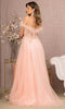 Turn heads and make a bold statement in the GL3138 dress by GLS by Gloria. This stunning off-the-shoulder gown features a captivating corset bodice adorned with intricate appliqués, 3D floral details, and shimmering sequins. The straight-across neckline is elegantly finished with feathers, while the floor-length A-line skirt flows gracefully with a high slit and a subtle train. Choose from Black or Blush for a glamorous and romantic look that will leave a lasting impression. Perfect for owning the spotlight at your next special occasion, this dress is sure to make you the center of attention.