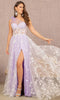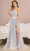 Immerse yourself in the ethereal beauty of this stunning GLSbyGloria dress. Adorned with exquisite floral appliques and shimmering glitter, this gown exudes sophistication and allure. The sheer bodice features a captivating asymmetrical neckline and delicate feather accents on the shoulder strap. The open back, adorned with a zipper closure, adds a touch of drama and elegance. The flowing A-line skirt cascades into a thigh-high slit, creating a captivating silhouette. Available in the enchanting hues of Lavender and Smoky Blue, this masterpiece will elevate your look to new heights, making you the center of attention at any special occasion.