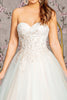 Embrace the enchantment of a starlit evening with GLSbyGloria's GL3244. This captivating strapless prom dress exudes contemporary sophistication and classic allure. Its intricate bead and jewel embellishments shimmer and dance on delicate mesh layers, creating a mesmerizing effect. The A-line silhouette offers a flattering fit, while the lace-up tie and zipper closure ensure a secure and comfortable wear.
