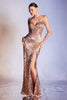 Prepare to illuminate the night in the captivating Cinderella Divine CH180. This sequined masterpiece features a sleeveless design with a daring plunging V-neckline and delicate thin straps. The fitted bodice with a banded midriff accentuates your curves, while the back zipper closure ensures a flawless fit. The skirt gracefully flows into a full-length sheath silhouette, punctuated by a high leg slit that adds a touch of allure. A true red carpet knockout, this evening gown by Cinderella Divine is meticulously crafted to make you shine at any event.