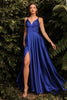 Embrace the epitome of elegance with the Cinderella Divine 7472 dress. Crafted from luxurious satin, this captivating piece exudes sophistication and allure. Its sleeveless V-neckline, adorned with delicate spaghetti shoulder straps, frames your décolletage with grace. The fitted midriff, defined by a wide self-fabric band, accentuates your curves, while the mesmerizing wrap-style flowy skirt cascades effortlessly to the floor. A daring high front slit adds a touch of sultriness, allowing you to showcase your legs with confidence. Whether you're attending a grand wedding or a glamorous prom, this exquisite dress will elevate your presence and leave an unforgettable impression.