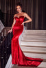 Immerse yourself in the epitome of sophistication with the Portia and Scarlett PS22565 dress. This exquisite creation is crafted from opulent velvet, its modern tailoring contouring to your body like a second skin. The asymmetrical neckline and sweetheart bodice are adorned with shimmering jewels, exuding an air of elegance. The single off-shoulder strap adds a touch of drama, while the mermaid skirt gracefully molds to your curves and cascades to the floor in a breathtaking train. Available in a palette of Black, Cobalt, and Red, this Portia and Scarlett masterpiece is destined to turn heads wherever you go.