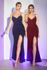 The sheath skirt features a daring ring slit, revealing a hint of allure as it gracefully trails to the floor. A cascading drape flows like a mesmerizing train, creating a sense of movement and elegance. This Cinderella Divine masterpiece is sure to leave a lasting impression, whether you're attending a prom, serving as a bridesmaid, or taking on the role of the Mother of the Bride.