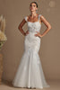 Command attention in this refined bridal gown from Nox Anabel Bridal. Its well-fitted bodice features a flattering plunging V-neckline and a low V-back, creating a captivating silhouette. Intricate floral embroidery embellishes the entire ensemble, adding an air of timeless elegance. The skirt flows gracefully in a full-length sheath silhouette, culminating in an elegant court train that will leave a lasting impression. This Nox Anabel Bridal creation is a testament to your inherent beauty and grace, ensuring you shine with exquisite allure on your special day.