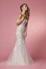 Indulge in the timeless allure of the Nox Anabel Bridal JS924 masterpiece. Its fitted corset bodice, adorned with intricate lace embroidery, creates a flattering and alluring silhouette. The sweetheart neckline is elegantly complemented by graceful off-shoulder sleeves, while an open back adds a touch of sophistication. The full-length mermaid skirt exudes timeless beauty, flowing effortlessly into a sweeping train. Embrace the promise of forever in this enchanting gown, designed to evoke cherished memories and make your special day unforgettable.