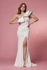 Embark on an enchanting journey in this ethereal Nox Anabel Bridal gown. The meticulously crafted beadwork and embroidery create an opulent tapestry that shimmers under the lights. Its form-fitting bodice flatters your curves, while the plunging V-neckline and V-back exude sophistication. The sheer inset at the bust and side panels adds an alluring touch, defining your natural waistline. The skirt cascades into a graceful sheath silhouette, culminating in a breathtaking sweep train. As you glide through the room, you'll captivate the crowd with your refined and unforgettable style.