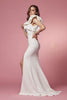 Ladivine Off Shoulder Fringe Prom Dress Beaded Slit Evening Gown CC324 Black/Nude