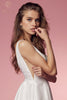Emanate an ethereal glow on your special day with the captivating Nox Anabel Bridal E156W creation. This meticulously crafted gown features a sleek satin silhouette adorned with intricate tailoring lines that define elegance. The plunging V-neckline takes center stage, gracefully enhanced by delicate sheer insets adorning the bodice and sides. As you walk down the aisle, the A-line skirt glides in a poetic cascade to the floor, graced by a gentle brush of a train that adds a touch of grandeur. Let your dreams come alive in this inspired Nox Anabel Bridal masterpiece, embodying the essence of sophistication and promising an elegant radiance that reflects your unique personality.