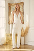 Indulge in the ethereal beauty of this Nox Anabel Bridal masterpiece. The full-length jumpsuit captivates with its cascading sequins that dance in the light, creating an enchanting spectacle. Its plunging neckline and broad waistband accentuate your curves, while the open back adorned with crisscross straps adds a touch of allure. The detachable overskirt provides a final flourish of elegance, completing this extraordinary creation. With its undeniable charm, this Nox Anabel Bridal design will leave an unforgettable impression wherever you grace the scene.