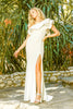 Ladivine Off Shoulder Fringe Prom Dress Beaded Slit Evening Gown CC324 Black/Nude