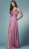 Radiate sophistication in the streamlined Nox Anabel E1020 creation. This stunning dress is meticulously tailored with a surplice bodice that drapes elegantly, accentuated by delicate spaghetti straps. The V-neckline adds a touch of allure, while flimsy straps lace up and tie at the low back, enhancing the captivating design. The skirt showcases a high slit, commanding attention as it cascades into a graceful A-line silhouette with a sweeping train. Embrace an ultra-chic style in this Nox Anabel masterpiece, guaranteed to leave a lasting impression. Discover the stunning collection of Nox Anabel dresses, reflecting your unique personality and providing you with an elegant red carpet look that will turn heads at any event.