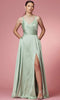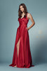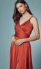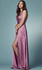Radiate sophistication in the streamlined Nox Anabel E1020 creation. This stunning dress is meticulously tailored, featuring a surplice bodice that elegantly drapes and is accentuated by delicate spaghetti straps. The V-neckline adds a touch of allure to the ensemble. Flimsy straps lace up and tie at the low back, enhancing the captivating design. The skirt showcases a high slit that commands attention as it cascades into a graceful A-line silhouette with a sweeping train. Embrace an ultra-chic style in this Nox Anabel masterpiece, guaranteed to leave a lasting impression.