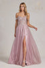 Embrace an evening of unparalleled elegance and allure with the Nox Anabel E1128 gown. This enchanting masterpiece boasts a sheer corset bodice adorned with shimmering beadwork and delicate lace appliqués. The sweetheart neckline and embroidered off-shoulder sleeves exude a touch of romanticism. The A-line silhouette flows effortlessly to the floor, creating a captivating and attention-grabbing look. A side slit adds a touch of intrigue, revealing a glimpse of your shapely leg. Secured with a center zipper closure, this dress exudes timeless appeal and will make you the center of attention at any special occasion.