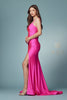 Radiate like a star in this enchanting Nox Anabel T481 gown. Crafted from luxurious chiffon, it features a plunging scoop neckline adorned with dual spaghetti straps, highlighting your alluring décolletage. The fitted princess-seamed bodice cinches your waist, while the open back, elegantly secured by a lace-up string detail, adds a touch of drama. The long sheath skirt boasts a daring thigh-high slit, gracefully concluding with a horsehair hem sweep train that ensures a remarkable entrance and exit. Whether you're attending a formal event, wedding, or red carpet premiere, this captivating gown will turn heads and make you the star of the celebration.