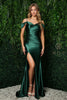 Exude captivating flair in the Nox Anabel E1048. Its figure-flattering bodice is adorned with diagonal pleats, complemented by a surplice V-neckline, off-shoulder sleeves, and delicate spaghetti straps in a cold-shoulder style. The back boasts a graceful low V-shaped cut secured with a center zipper closure. Embracing a full-length trumpet silhouette, this beautiful ensemble features a daring thigh-high leg slit that elegantly exposes your leg. The skirt is further adorned with a ravishing sweep train, adding an enchanting touch to the overall charm of the dress.