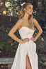 Prepare to captivate and command attention as you glide into your wedding reception in the Nox Anabel JW938. This exquisite bridal gown seamlessly blends modern glamour with vintage-inspired charm, exuding timeless romance. The ruched bodice beautifully accentuates the classic sweetheart neckline, while the flowing A-line skirt adorned with a daring high slit adds an element of allure that will undoubtedly make you shine with sophisticated elegance. Fastening with a concealed back zipper, this gown ensures a polished and seamless look. Nox Anabel JW938 is meticulously crafted to embrace and enhance the natural beauty of every woman, making it the perfect choice for your special day.