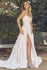 Prepare to be the center of attention as you glide into the room in the captivating Nox Anabel JW938 wedding dress. This exquisite gown seamlessly blends modern glamour with vintage-inspired charm, exuding timeless romance. The ruched bodice beautifully frames the classic sweetheart neckline, while the A-line skirt with a daring high slit adds an element of allure that will undoubtedly make you shine with sophisticated elegance. Fastening with a concealed back zipper, this gown ensures a polished and seamless look. Nox Anabel JW938 is meticulously crafted to embrace and enhance the natural beauty of every woman, making it the perfect choice for your special day.