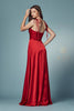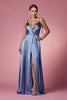Indulge in the opulent allure of the Nox Anabel R1029 creation. This meticulously tailored dress exudes elegance and sophistication, featuring a surplice bodice adorned with delicate tie straps that accentuate the V-neckline and mid-rise back. The skirt commands attention with a high slit that flows seamlessly into an A-line silhouette, culminating in a sweeping train that adds a touch of drama. Elevate your glamour quotient with this mesmerizing masterpiece that embodies the essence of Nox Anabel's captivating designs. This dress harmoniously mirrors your individuality, ensuring an unforgettable red carpet presence that reflects your distinct personality.