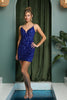 Make a bold statement with the Nox Anabel R704 cocktail dress. Adorned in shimmering sequins, this dress exudes glamour and sophistication. Its plunging V-neckline and illusion inset create a flattering silhouette, while the open back with crisscross straps and lace-up tie adds a touch of intrigue. The sheath silhouette is tailored to perfection, finishing in a chic short hemline. With its captivating design, this Nox Anabel creation is sure to turn heads at your upcoming evening event.