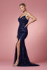 Step into the radiant spotlight with the Nox Anabel R1031 creation. This masterpiece is meticulously adorned with a delicate sprinkling of shimmering sequins and intricate beadwork, creating an enchanting glow. The captivating cowl neckline is gracefully held in place by slender straps that artfully lace up and tie at the low back, revealing a hint of alluring skin.