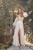 * Full-length trumpet silhouette with a daring thigh-high leg slit