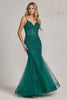 Embrace your fashion-forward spirit with the Nox Anabel P1170. This sleeveless masterpiece showcases your trendsetting style with its meticulous embellishments. The illusion corset bodice gracefully reveals exposed boning detail, creating a captivating silhouette. The V-neckline adds a touch of allure, while the V-open back captivates from every angle. With a form-fitting silhouette through the hips, the skirt gracefully flares from the knees, fashioning an elegant mermaid silhouette that beautifully captures your individuality.