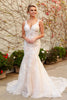 Capture exquisite moments in photographs wearing the captivating Nox Anabel H493 gown. Embellished with delicate lace, this dress showcases a plunging neckline graced by a sheer panel on the fitted bodice. The figure-flattering trumpet silhouette is perfectly complemented by the open scoop back style, while a chapel train adds a touch of elegance to create unforgettable memories at your special event.