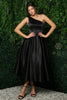 Elevate your presence with exceptional flair in the sophisticated Nox Anabel JE931 masterpiece. This exquisite attire features a sleeveless bodice adorned with an asymmetrical neckline, highlighted by a foldover detail and wide one-shoulder straps that create a graceful mid-open back. A slender set-on waistband cinches your waistline with perfection, seamlessly transitioning into a flowing pleated A-line skirt that cascades into a tea-length hemline. Step into this captivating creation and leave an unforgettable impression with your timeless elegance and style.