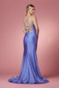 Radiate as the star of the celebration in this breathtaking gown. The fitted princess-seamed bodice accentuates your silhouette, while the open back secured by a lace-up string detail adds a touch of drama. The long sheath skirt features a daring thigh-high slit, gracefully concluding with a horsehair hem sweep train that ensures a grand entrance and exit.