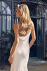 Indulge in the timeless elegance of the Nox Anabel JE954 gown. This ethereal creation seamlessly combines simplicity and sophistication, embracing a flattering sheath silhouette that accentuates your curves. The exquisite bias cut drapes gracefully, while the cowl neckline adds a touch of alluring charm. Delicate spaghetti straps and a flowing chapel train complete the enchanting design.