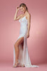 Indulge in the epitome of elegance with Nox Anabel's S458 masterpiece. Crafted from a captivating blend of applique materials, this dress exudes a captivating aura. Its plunging V-neckline, accentuated by a sheer panel, draws attention to your décolletage. The fitted bodice boasts an enticing high slit, harmonizing with the alluringly open strappy back design. The dress gracefully flows into a lengthy sheath silhouette, culminating in a sweeping train that adds a touch of grandeur to your every step. Whether you're gracing a formal event or making a statement on the red carpet, this Nox Anabel creation will elevate your style to new heights.