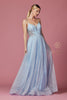 Immerse yourself in the enchanting allure of a dream with the resplendent Nox Anabel T1033 gown. This ethereal masterpiece captivates with its shimmering mesh overlay, creating an aura of pure romance. The spaghetti straps gracefully accentuate the shoulders, while the plunging sweetheart neckline is enhanced by a delicate illusion inset. Intricate beadwork and floral embroidered appliqués adorn the midriff sides, framed by charming cutouts. A sheer open back adorned with embellishments adds a touch of allure. The sumptuous A-line skirt descends gracefully to the floor, culminating in a sweeping train that will leave a lasting impression. Elevate your elegance and embrace the magic of the night with this exquisite Nox Anabel masterpiece.