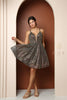 * Plunging V-neckline and adjustable spaghetti straps for a flattering fit
