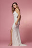 The skirt unveils a daring high slit that reveals a glimpse of your leg, while the full-length sheath silhouette gracefully tapers into an elegant sweep train. As you move, the fabric flows effortlessly, creating a mesmerizing effect. Transform into an irresistible vision in this Nox Anabel masterpiece, sure to leave an unforgettable impression wherever you go.