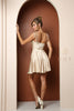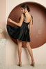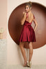 Radiate timeless charm in this Nox Anabel R701 short dress. Its A-line silhouette flatters all body types, while the plunging V-neckline adds a touch of allure. Delicate pleats adorn the fitted bodice, creating a sophisticated and feminine look. Adjustable shoulder straps and an open back with zipper closure ensure a secure and comfortable fit. The skirt flows gracefully into a mid-thigh hemline, showcasing your legs and adding a touch of playful elegance. Embrace your style with confidence in this fashionable creation by Nox Anabel.