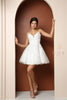 **NoxAnabel Lace Appliqué Short Sheer V-Neck Dress with A-Line Skirt**
