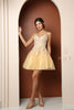 Capture picture-perfect moments in the NoxAnabel Lace Appliqué Short Sheer V-Neck Dress with A-Line Skirt. This stunning dress is designed to make you selfie-ready with its alluring silhouette and intricate details. The sleeveless illusion V-neck bodice is secured by delicate spaghetti straps, while the open strappy back adds an alluring touch. The short A-line skirt, crafted from a blend of lace appliqués, tulle, and polyester fabric, adds movement and elegance to the ensemble. Thoughtful details such as the built-in bra cups and full lining ensure your comfort and confidence, making this dress an excellent choice for a variety of special occasions.