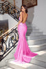 Unveil your inner goddess in the enchanting Portia and Scarlett PS23499 dress. This exquisitely crafted gown is a testament to impeccable craftsmanship, designed to accentuate your figure with its tailored lines. The sweetheart neckline features delicate scalloped edges, adorned with a mesmerizing beaded spectacle. Graceful spaghetti straps cascade down the bodice, leading to a captivating backless design adorned with shimmering embellishments. The mermaid skirt effortlessly sculpts your silhouette, flaring out into a breathtaking sweeping train. Choose from a palette of enchanting colors, including Blue Cobalt, Emerald, and Pink, to match your personal style. Prepare to be awestruck by the exquisite elegance of this Portia and Scarlett masterpiece, a true embodiment of timeless beauty.