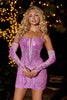 Step into a realm of sophistication and allure with the Portia and Scarlett PS24215 dress. This exquisite ensemble features a figure-flattering silhouette adorned with shimmering beadwork and intricate lace appliqué. The bodice captivates with its transparent boning and plunging sweetheart neckline, beautifully accentuated by delicate spaghetti straps that cascade elegantly to the mid-rise back. The sheath skirt gracefully embraces your curves, ending at a mid-thigh length hem for a touch of allure. For added versatility, complete your look with the detachable long sleeve option. Available in a captivating array of Black, Pink, and Purple, this cocktail dress from Portia and Scarlett guarantees you'll be the center of attention at any special occasion.