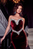 Indulge in the timeless allure of the Portia and Scarlett PS23000 gown. Crafted from opulent velvet, this masterpiece exudes breathtaking elegance and charm. The strapless bodice boasts an alluring sweetheart neckline that plunges gracefully, while faceted jewels adorn the bodice, framing the intricate basque waist. The mermaid skirt seamlessly sculpts and flares, culminating in a captivating sweep that will leave a lasting impression. Embrace your inner beauty and radiate timeless sophistication in this exquisitely designed gown. Available in a stunning Deep Red hue, the PS23000 is the epitome of grace and sophistication.