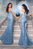 Ladivine Off Shoulder Fringe Prom Dress Beaded Slit Evening Gown CC324 Black/Nude