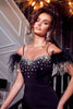 Ladivine Off Shoulder Fringe Prom Dress Beaded Slit Evening Gown CC324 Black/Nude
