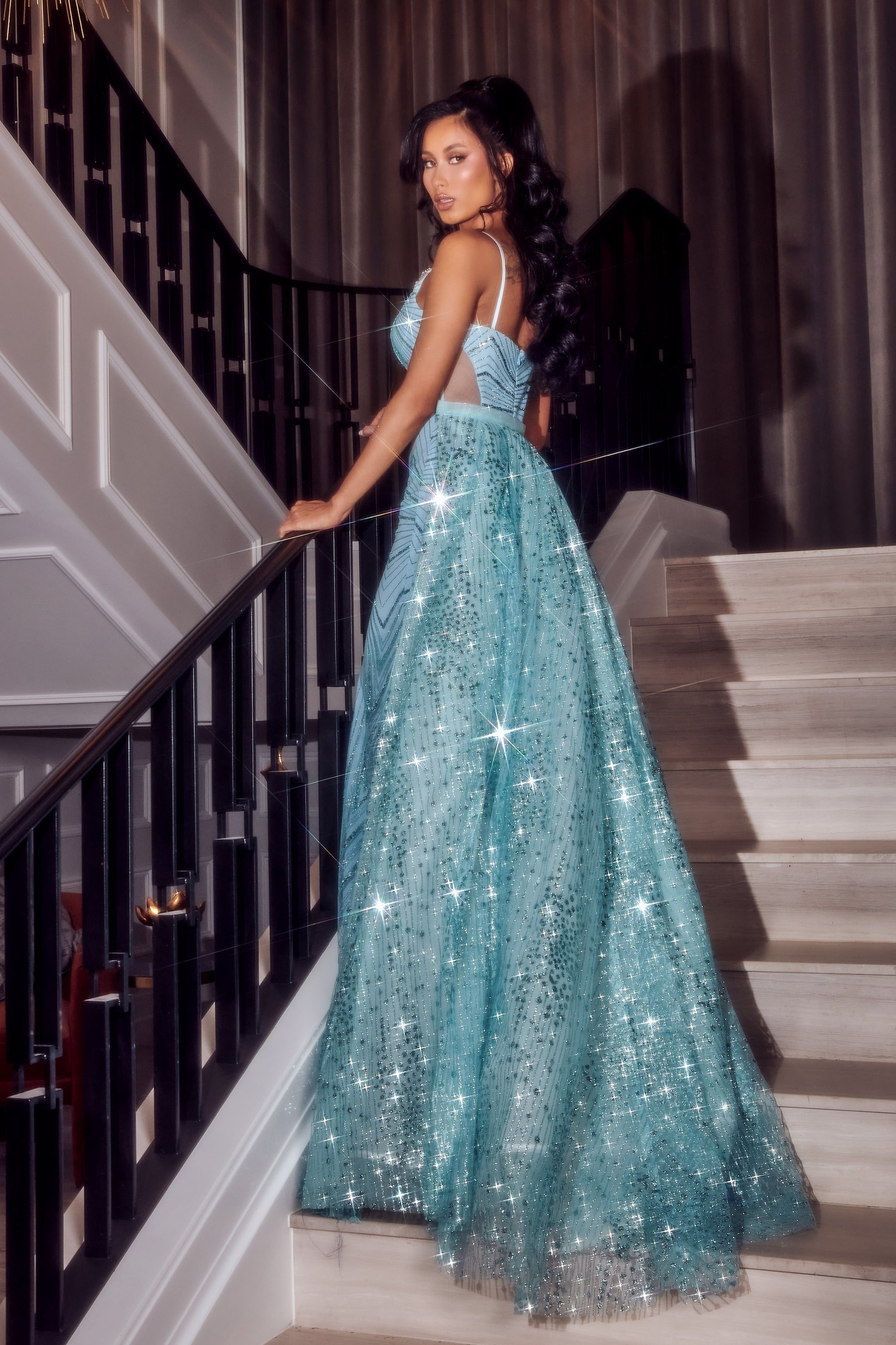 * Shimmering cracked ice and rhinestone embellishments