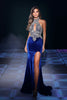 Ladivine Off Shoulder Fringe Prom Dress Beaded Slit Evening Gown CC324 Black/Nude