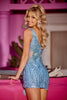Emanate class and elegance in this captivating cocktail dress by Portia and Scarlett. An absolute showstopper for any occasion, this dress is adorned with glistening sequins that embellish the fitted bodice entirely. It showcases an asymmetrical neckline, a single long sleeve that gracefully drapes over one shoulder, and a slanted mid-open back that adds a touch of allure. The short sheath skirt boasts a side drape that cascades into a sweeping train, creating a dramatic and chic effect. Transform into an irresistible vision that commands everyone's attention in this Portia and Scarlett masterpiece.