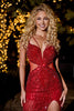 Step into the spotlight with the exquisite Portia and Scarlett PS23721c gown. This showstopping masterpiece is adorned with dazzling sequins and intricate beading that shimmer and shine under the lights. Its sleeveless bodice features a flattering V-neckline and sheer cutouts on the sides, creating an alluring silhouette. Dual spaghetti straps provide comfortable support, while the sheath silhouette beautifully accentuates your figure. The daring thigh-high leg slit adds a touch of allure, making you feel confident and captivating. Available in the radiant Silver Nude color, this Portia and Scarlett masterpiece will transform you into a queen for the evening.